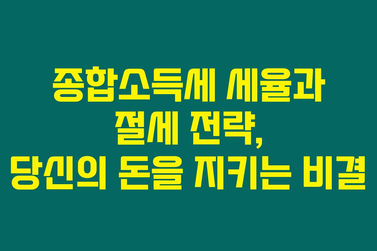 종합소득세 세율과 절세 방법을 이해하고 이를 실천하는 것은 재정적 안정성을 높이는 데 매우 중요하답니다. 따라서, 계획적으로 관리하는 자세가 필요해요.