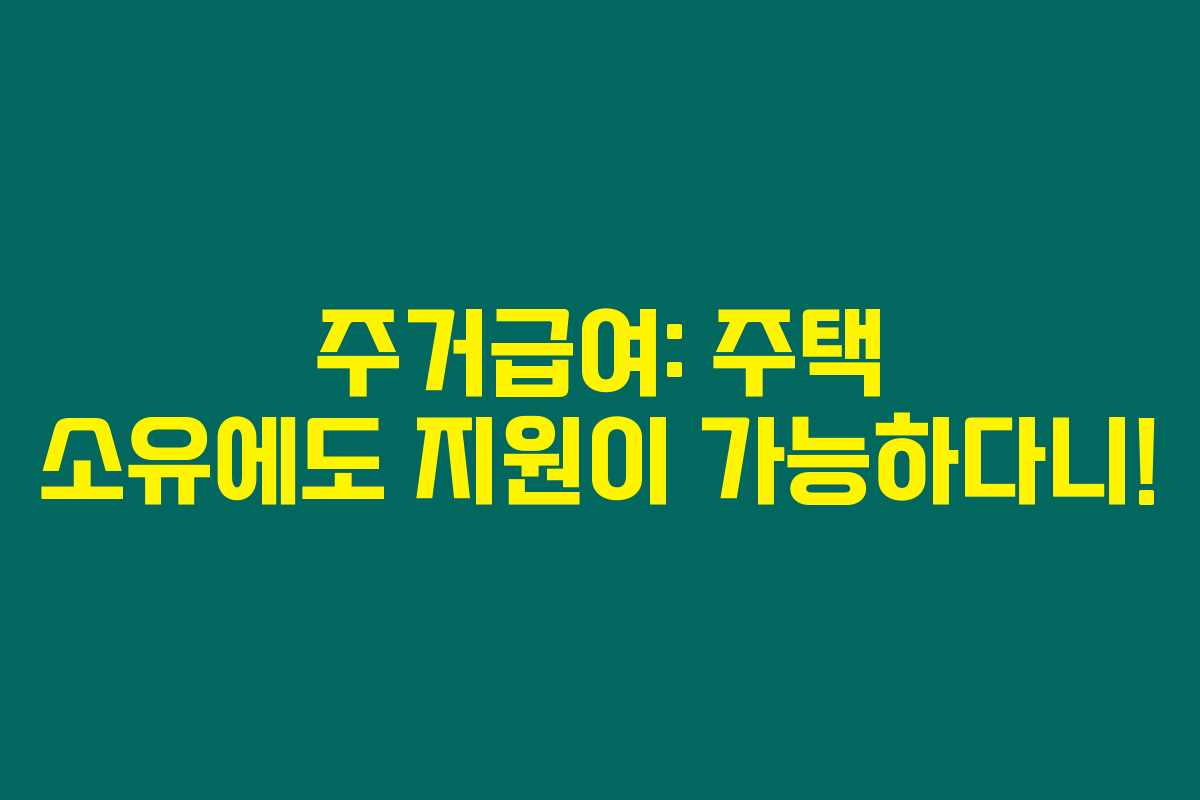 주거급여: 주택 소유에도 지원이 가능하다니!