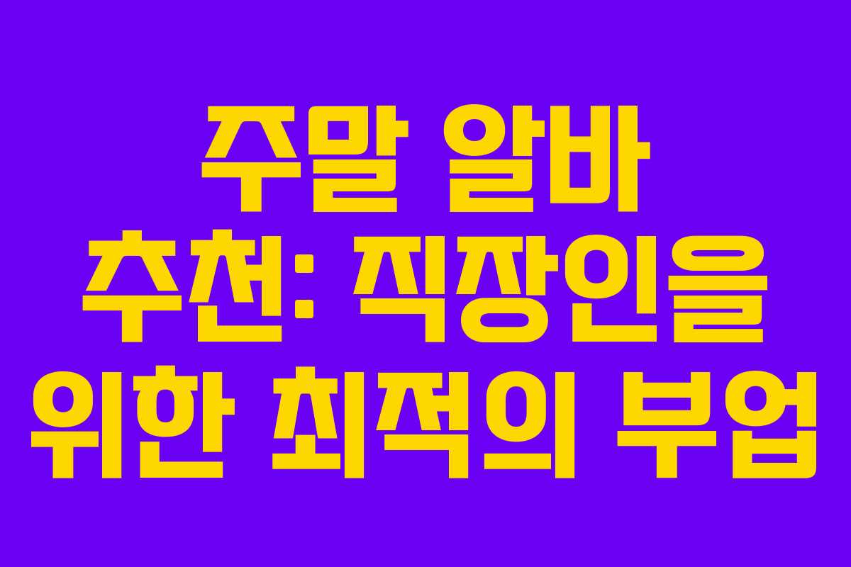 주말 알바는 직장인들에게 좋은 추가 소득을 제공하며, 본업과 병행하기에도 적합한 직종입니다. 다양한 선택지 중에서 자신에게 맞는 알바를 찾아보시기 바랍니다.