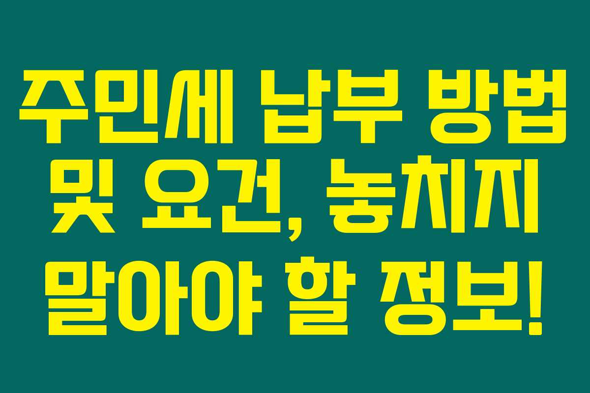 주민세를 어떻게 납부해야 할지 고민 중이라면, 아래를 읽어보시면 주민세 납부 요건과 방법에 대한 정보를 한 눈에 정리할 수 있어요. 주민세 납부는 지역사회와 우리 동네 발전을 위해 꼭 필요한 의무이니, 놓치지 말고 확인해보세요!