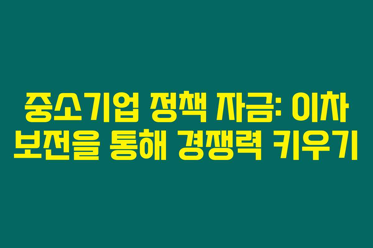 중소기업 정책 자금: 이차 보전을 통해 경쟁력 키우기