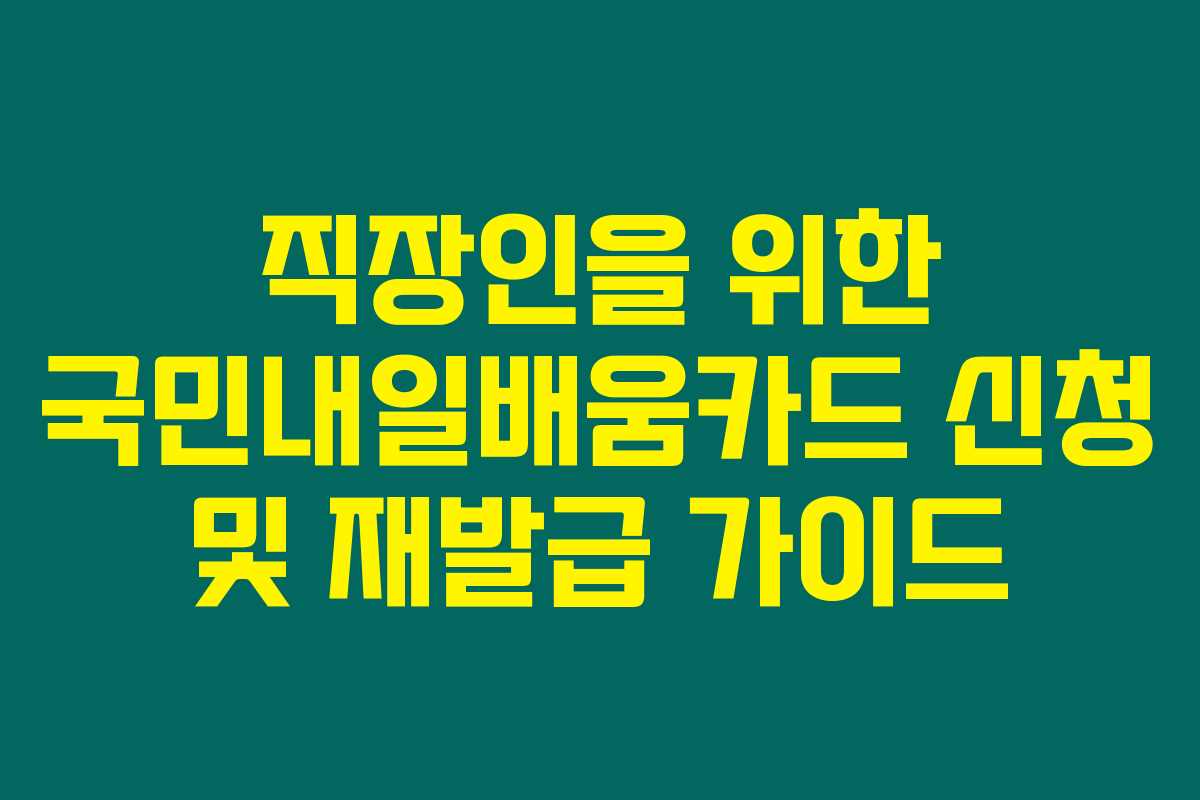 제가 판단하기로는, 직장인들이 보다 나은 직업 능력을 쌓기 위해서는 국민내일배움카드를 활용하는 것이 필수라고 생각해요. 이 글에서는 직장인 국민내일배움카드의 신청 절차, 재발급 방법, 신청 자격 요건, 카드 선택 팁에 대해 상세히 소개해드릴게요. 아래를 읽어보시면 많은 도움이 될 거예요.