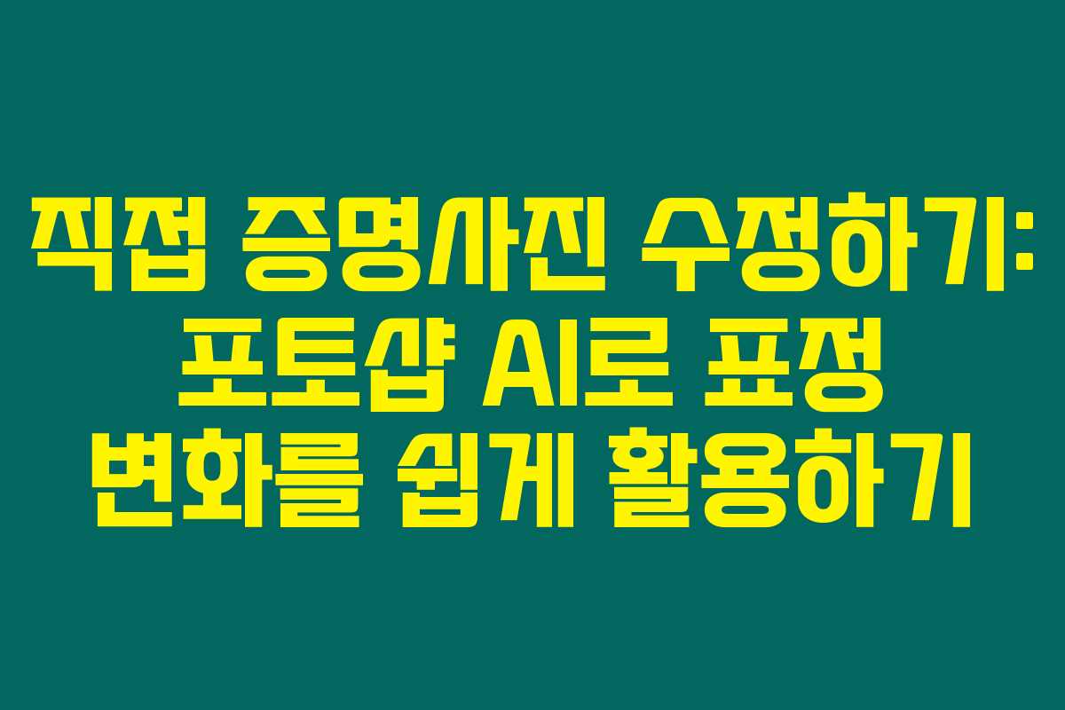 증명사진을 직접 수정하고 싶으신가요? 그렇다면 아래를 읽어보시면 포토샵 AI로 간편하게 얼굴 표정을 바꾸는 방법을 알아보실 수 있을 거예요. 아무리 바쁜 일상이라고 해도 짜증스러운 증명사진을 쉽게 바꿀 수 있는 기술이 있다는 사실, 놓치면 안되겠죠?