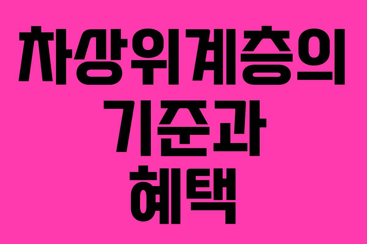 차상위계층은 우리나라 복지제도에서 중요한 위치를 차지하고 있습니다. 이들은 기초생활수급자와는 다르지만, 잠재적 빈곤층으로 분류되어 다양한 복지 혜택을 받을 수 있습니다. 이번 글에서는 차상위계층의 기준과 그들이 누릴 수 있는 혜택, 그리고 혜택 조회 방법에 대해 알아보겠습니다.