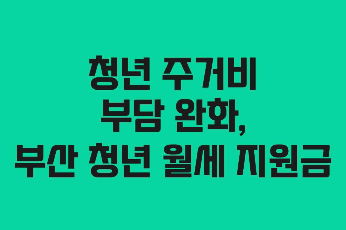 청년 주거비 부담 완화, 부산 청년 월세 지원금