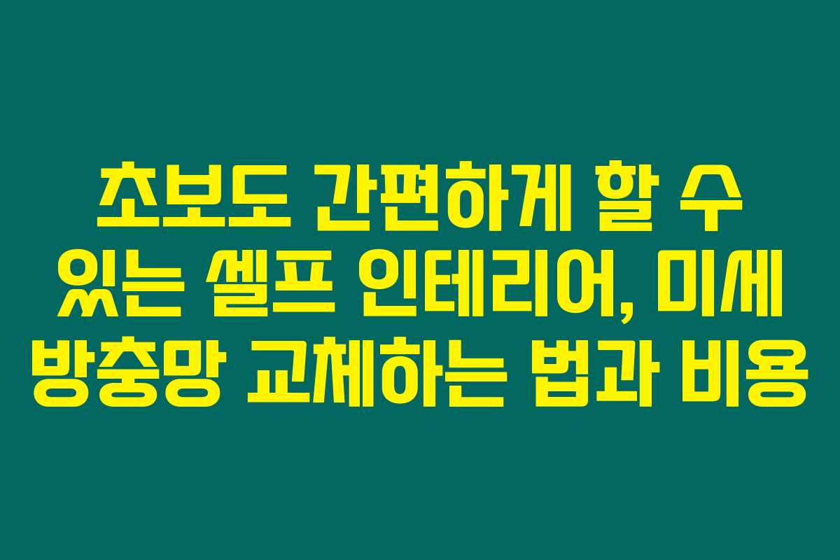 제가 직접 경험해본 바로는, 셀프 인테리어를 하는 사람들의 가장 큰 관심사 중 하나는 비용 절감과 실내 환경 개선입니다. 특히 미세 방충망 교체는 비용 부담 없이 집의 쾌적함을 높일 수 있는 아주 쉬운 방법이라고 생각해요. 아래를 읽어보시면 초보도 쉽게 따라할 수 있는 방충망 교체 방법과 예상 비용에 대한 정보를 확인할 수 있습니다.