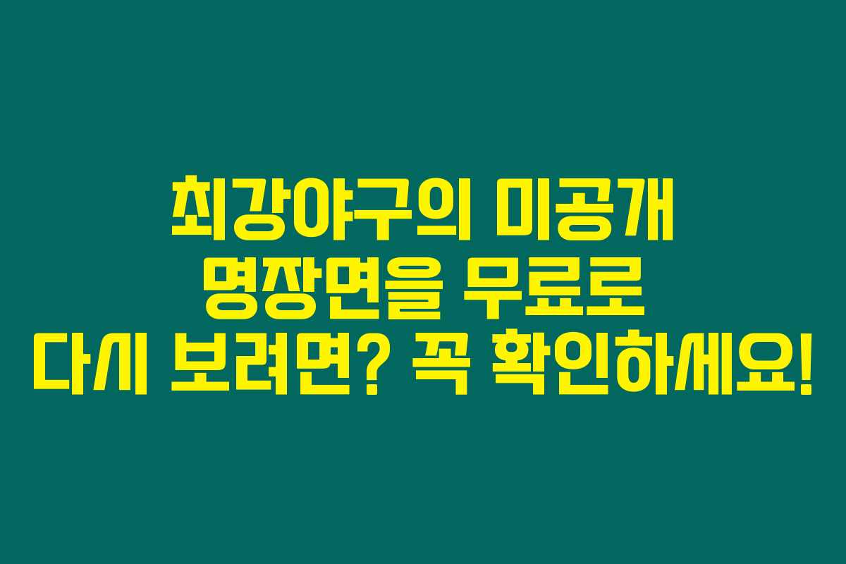 최강야구 프로그램에 관심 있는 분이라면 혹시 놓친 에피소드가 있나요? 방송 중에 놓친 명장면과 미공개 장면들을 보지 못해 아쉬운 분들은 아래를 확인해보세요. 무료로 다시 볼 수 있는 방법을 소개합니다!