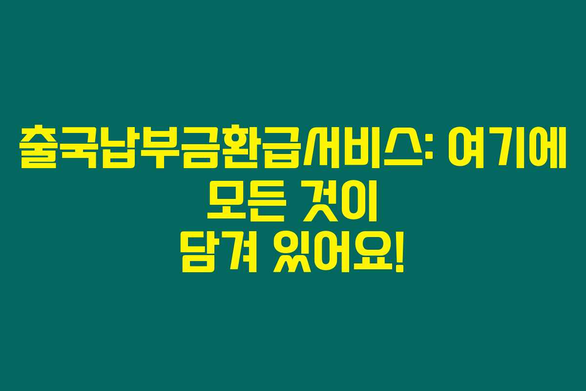 제가 알아본 바로는, 많은 사람들은 해외여행을 떠나기 전 다양한 준비를 하지만, 종종 ‘출국납부금환급서비스’ 같은 유용한 정보를 놓치는 경우가 많습니다. 이 게시글에서는 출국납부금환급서비스의 모든 것을 안내해 드릴 테니, 아래를 읽어보시면 여러분의 소중한 환급금을 놓치지 않도록 도움이 될 거예요!