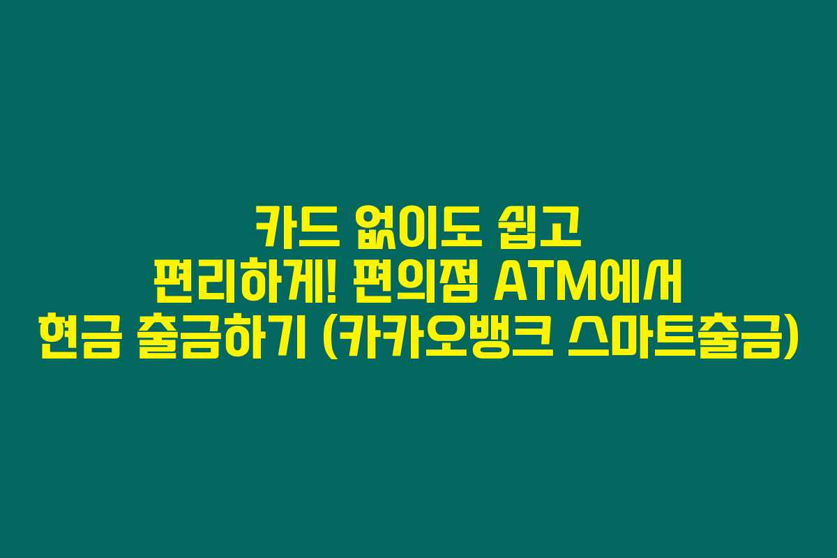 카드 없이 편의점 ATM에서 현금을 출금하기 위해서는 우선 카카오뱅크의 스마트출금 기능을 신청해야 합니다. 아래 단계를 따라 진행해보세요.