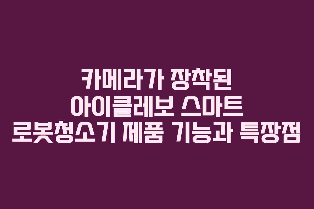 아이클레보 스마트 로봇청소기는 혁신적인 카메라 기술을 기반으로 한 고성능 청소 기기입니다. 이 제품은 사용자의 편의를 고려하여 다양한 기능과 특장점을 제공합니다.