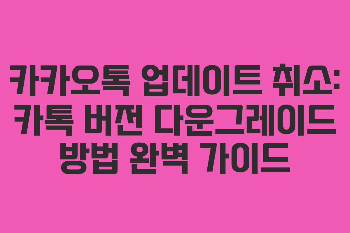 카카오톡 다운그레이드 전 필수: 대화 백업