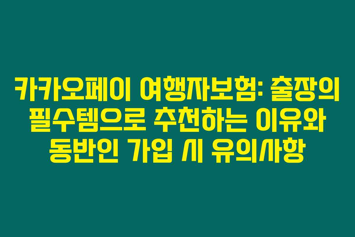 최근 해외여행을 준비하면서 여러 보험 상품을 비교해본 결과, 카카오페이 여행자보험이 가장 매력적이라는 생각이 들었어요. 간편하게 가입할 수 있고, 보장 내용도 탄탄한데다가, 앱을 통해 관리하기 쉽다는 장점이 있죠. 아래를 읽어보시면 카카오페이 여행자보험을 추천하는 이유와 동반인 가입 시 주의해야 할 사항에 대해 자세히 알아보실 수 있을 거예요.