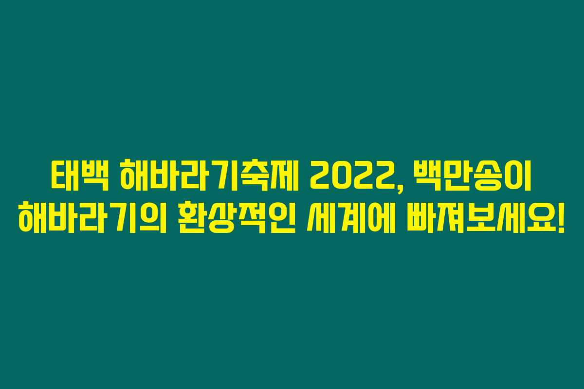태백 해바라기축제는 매년 여름마다 강원도 태백시 구와우 마을에서 개최되는 매력적인 행사입니다. 2022년에는 7월 22일부터 8월 7일까지 총 17일간 백만송이 해바라기가 만개하며 여러분을 맞이합니다. 아래를 읽어보시면 태백 해바라기축제의 특별한 매력과 다양한 즐길 거리를 알아보실 수 있을 거에요!