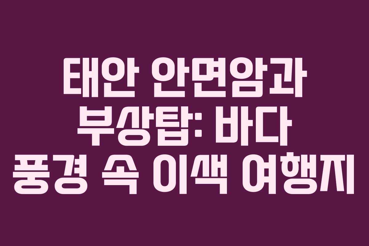 태안 안면도는 아름다운 바다 풍경과 함께 독특한 경험을 선사하는 여행지로, 특히 안면암과 부상탑이 많은 이들에게 사랑받고 있습니다. 이곳에서의 여행은 고요한 자연 속에서의 힐링을 가능하게 합니다.
