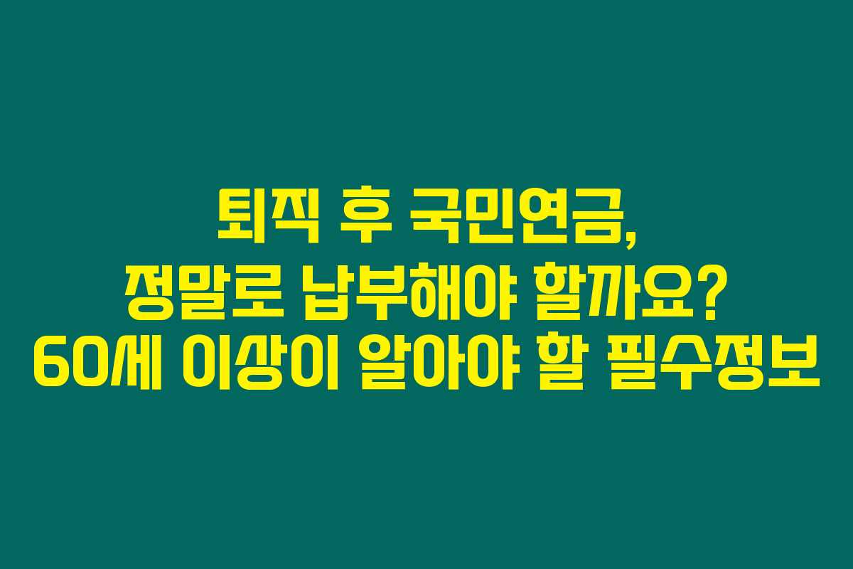 퇴직 후 국민연금, 정말로 납부해야 할까요? 60세 이상이 알아야 할 필수정보