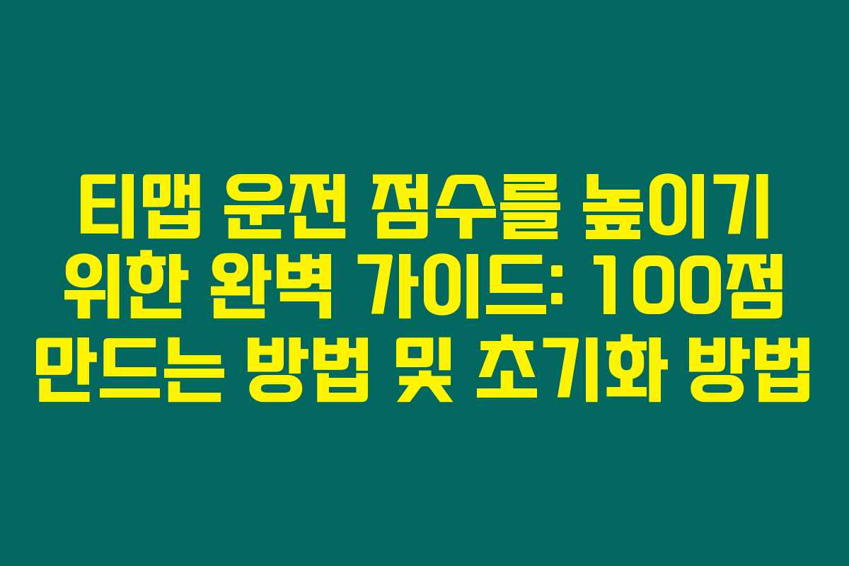 제가 직접 경험해본 결과로는, 많은 운전자들이 자동차 보험료를 절감하기 위해 다양한 방법을 찾고 있습니다. 그 중 하나가 바로 티맵 운전 점수를 활용한 보험 할인 혜택입니다. 티맵을 통해 획득한 높은 점수는 보험료 절감의 열쇠가 될 수 있습니다. 아래를 읽어보시면, 티맵 운전 점수를 확인하고 100점으로 올리는 방법, 나아가 필요할 경우 점수를 초기화하는 방법에 대해 알아보실 수 있습니다.