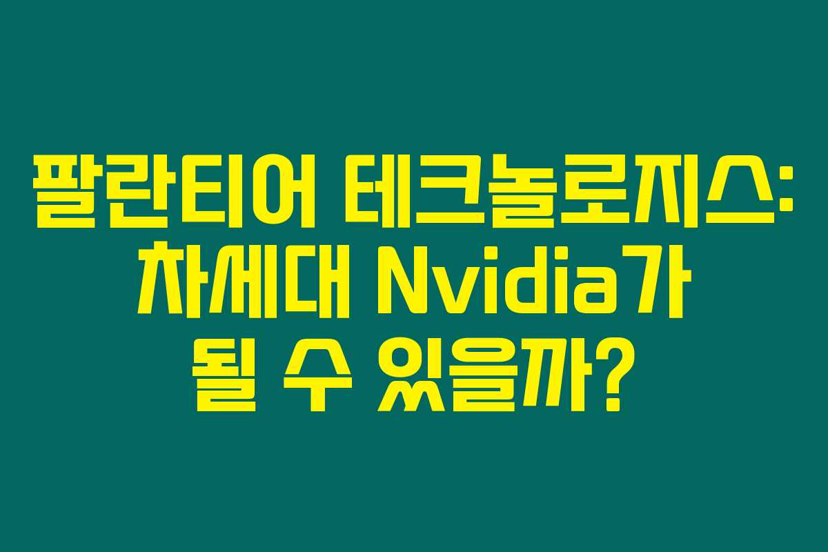 제가 직접 리서치한 바로는 팔란티어 테크놀로지스(PLTR)는 현재 IT 기술과 인공지능이 결합된 혁신적인 기업으로 증시에서 주목받고 있습니다. 최근 S&P500 편입 기대감도 모멘텀이 되고 있으며, 정부와 기업에 맞춤형 데이터 솔루션을 제공하는 점에서 중요한 역할을 하고 있습니다. 아래를 읽어보시면, 플란티어가 어떻게 차세대 Nvidia가 될 가능성이 있는지, 그 배경과 전망을 알아볼 수 있습니다.