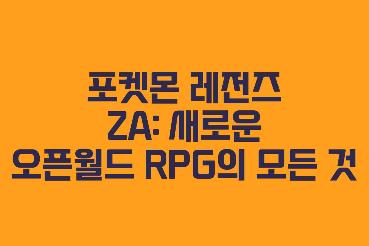 포켓몬 레전즈 ZA는 어떤 게임인가요?
