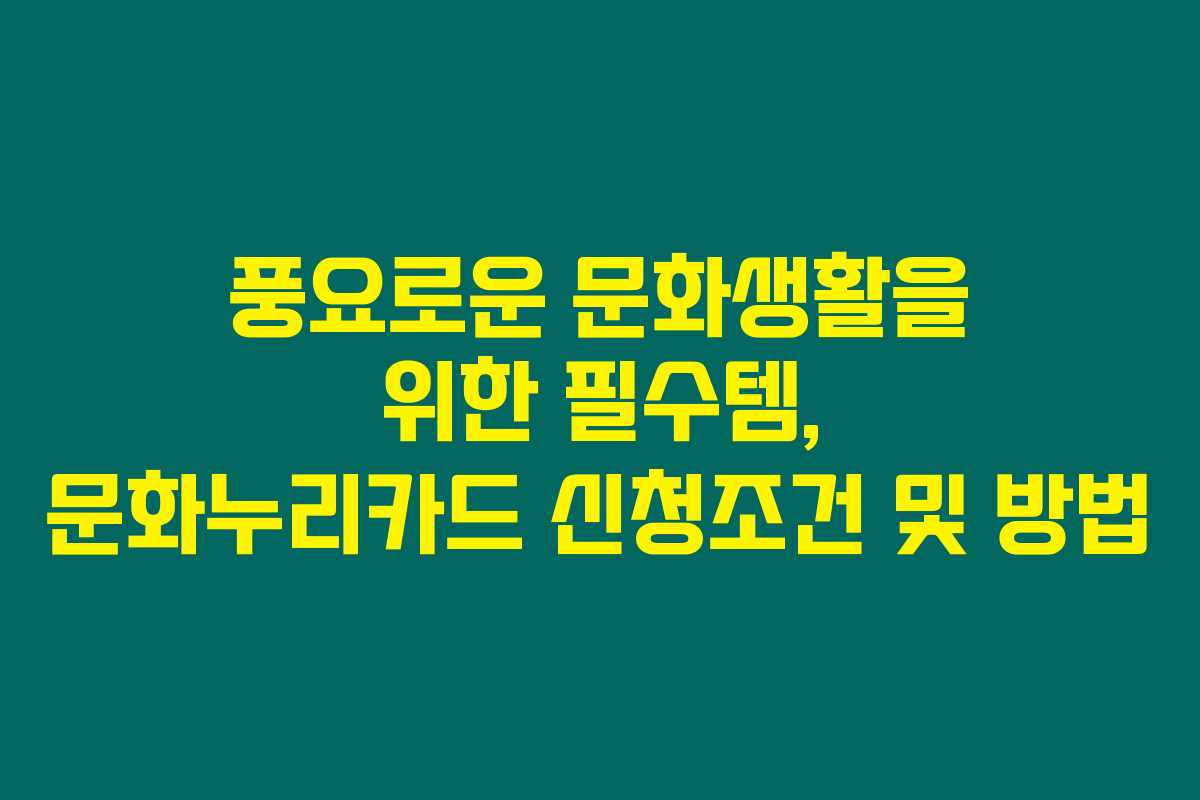 문화누리카드는 여러분의 문화와 여행, 체육 활동을 더욱 풍요롭게 만들어주는 필수 콘텐츠입니다. 여러 조건을 충족하면 신청할 수 있는데요. 정말 간단한 방법으로 더 많은 혜택을 누릴 수 있답니다. 아래를 읽어보시면 문화누리카드의 신청조건과 신청방법, 사용등록 절차에 대해 자세히 알아볼 수 있으니 놓치지 마세요!