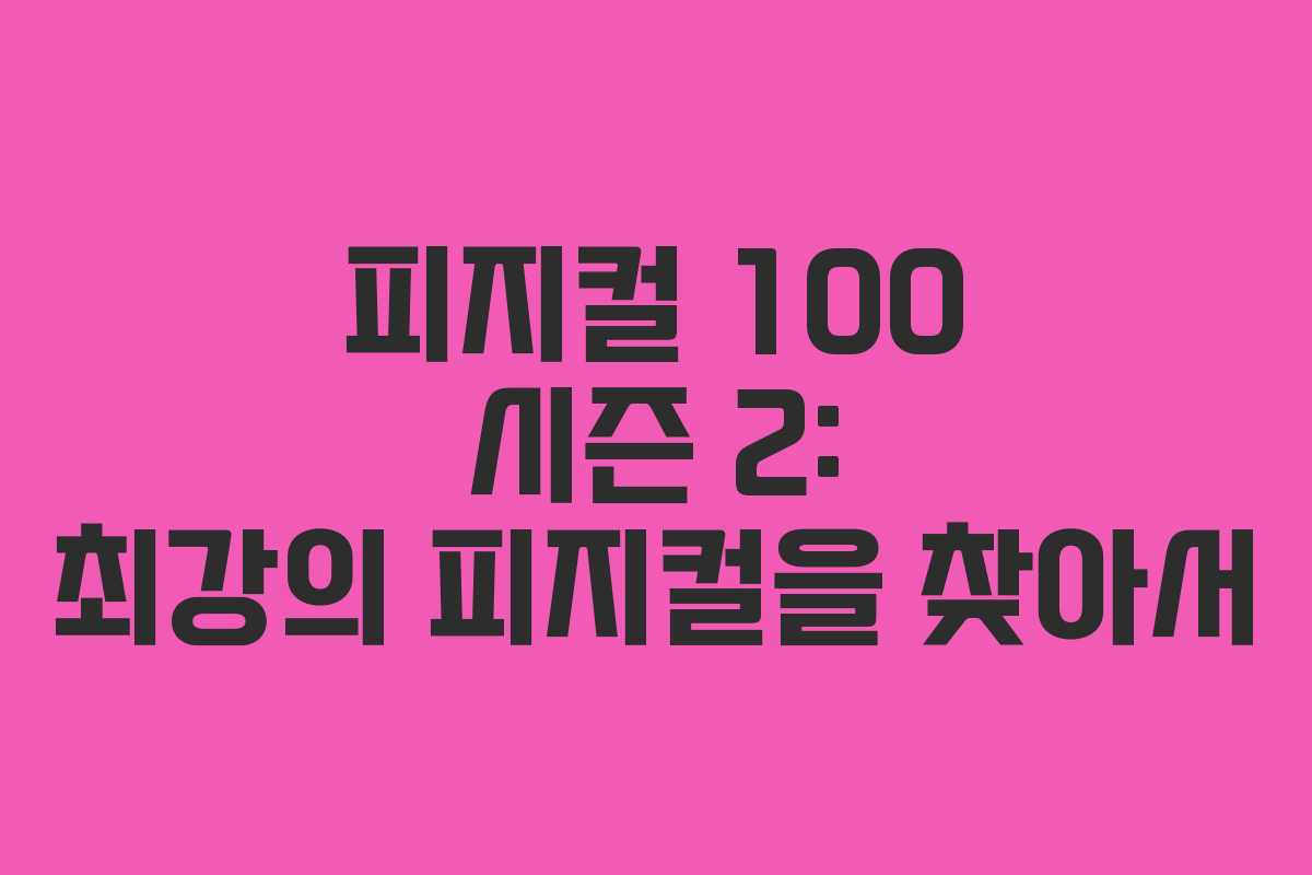 피지컬 100 시즌 2는 한국 예능의 새로운 지평을 열어가는 프로그램으로, 앞으로의 전개가 기대됩니다.