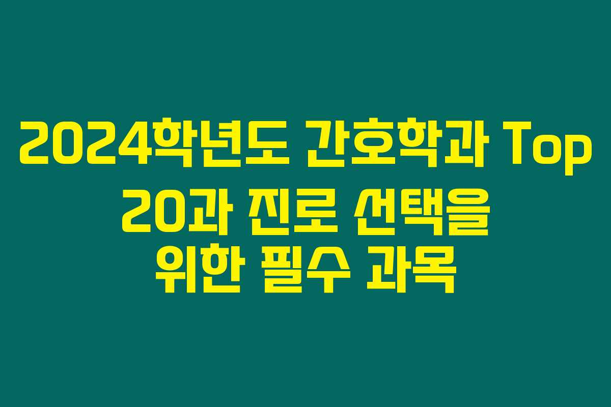 2024학년도 간호학과 Top 20과 진로 선택을 위한 필수 과목