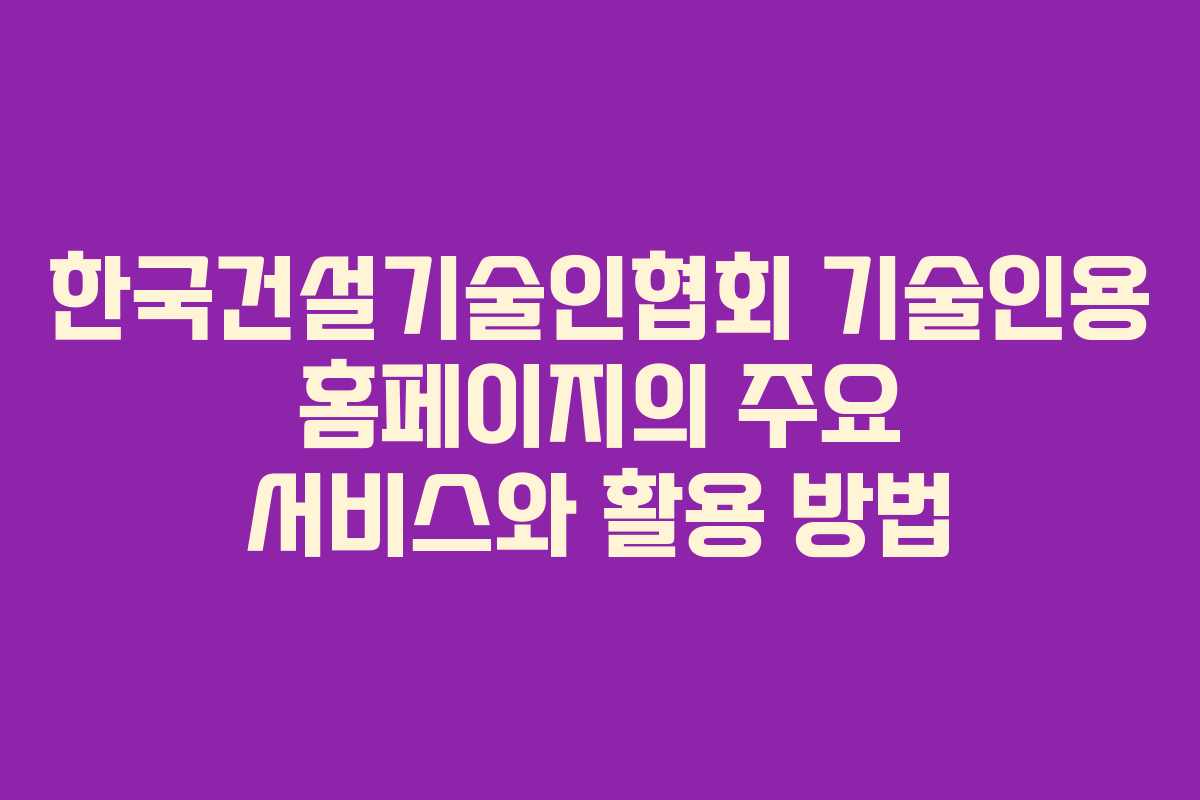 한국건설기술인협회 기술인용 홈페이지의 주요 서비스와 활용 방법