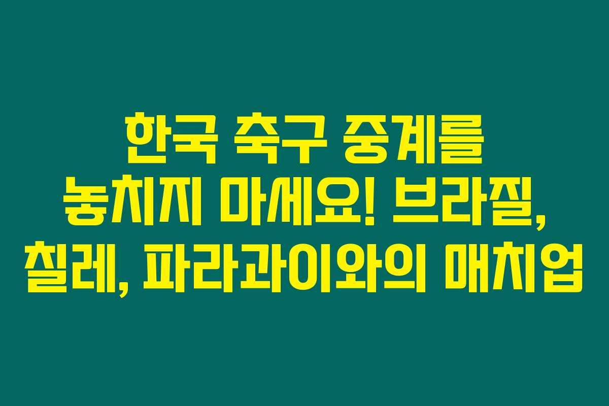 이번 한국 브라질, 칠레, 파라과이 축구 중계를 통해 많은 응원과 지지를 보내보세요. 여러분의 방송 선택이 경기를 더욱 재밌게 만들어 줄 거예요. 다양한 중계 서비스를 통해 응원하는 재미를 만끽해 보세요!