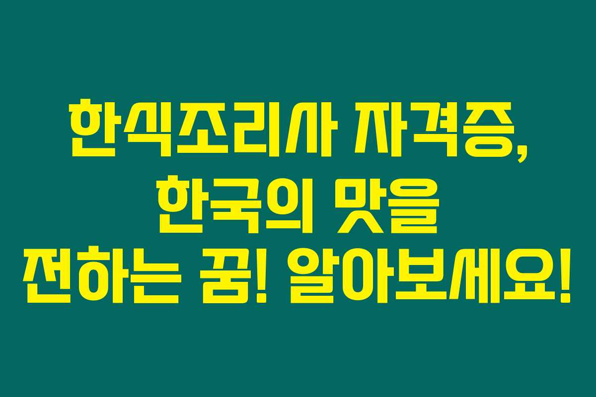 - 한식조리사 자격증은 한국의 전통 음식을 배우고 조리할 수 있는 능력을 증명하는 자격증이에요.