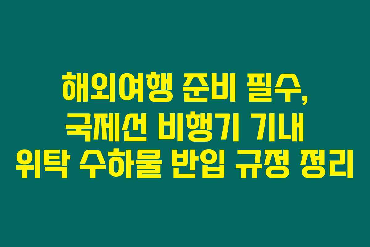 제가 직접 체크해본 바로는, 해외여행을 계획하면서 국제선 비행기 기내와 위탁 수하물에 대한 규정을 제대로 이해하는 것이 매우 중요합니다. 각 항공사와 도착 국가에 따라 규정이 상이하기 때문에 미리 확인하는 것이 좋습니다. 아래를 읽어보시면, 기내 반입 가능 물품과 금지 물품 등에 대한 규정을 상세히 알 수 있습니다.