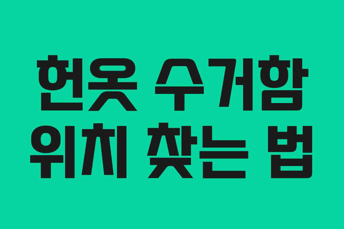 헌옷 수거함은 일반적으로 아파트 단지, 주택가, 길거리 등 여러 장소에 설치되어 있습니다. 특히 초록색이나 회색의 철제 상자로 되어 있으며, ‘헌옷 수거함’이라는 문구가 크게 적혀 있습니다. 가장 간단한 방법은 자주 다니는 동네의 골목길을 걸어보며 찾는 것입니다.