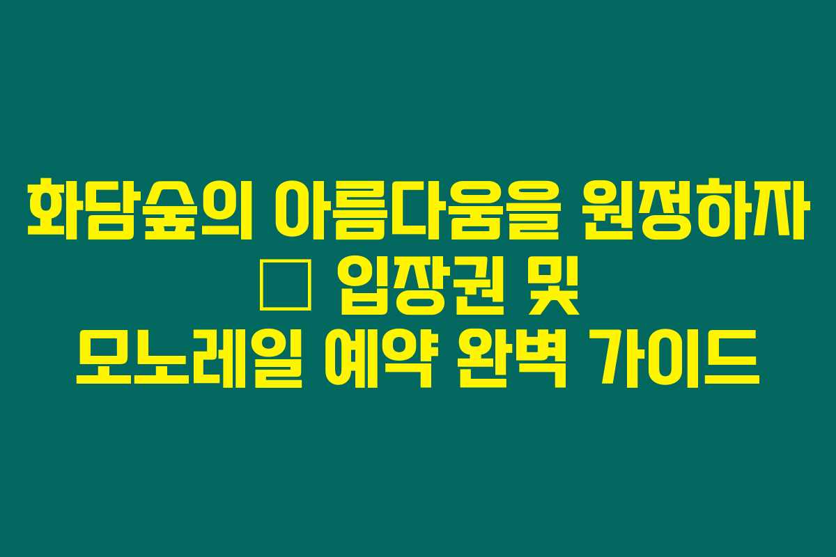 화담숲은 경기도 광주에 위치한 숨겨진 보물 같은 곳으로, 사계절 내내 다양한 자연의 아름다움을 즐길 수 있는 장소입니다. 많은 사람들에게 사랑받는 이곳을 잘 즐기기 위해서는 꼭 필요한 정보가 있어요. 아래를 읽어보시면 화담숲 입장권 금액 및 예약 방법과 모노레일 티켓 금액 및 예약 방법에 대해 자세히 안내해 드릴게요.