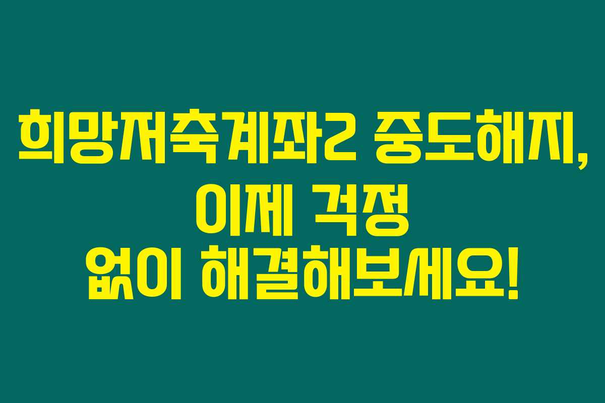 희망저축계좌2는 정부의 자산 형성 지원 프로그램으로 저소득 계층에게 유용한 저축 전환 상품이에요. 하지만 생각지 못한 상황으로 인해 중도해지를 해야 할 경우가 생기죠. 중도해지란 계약 기간이 완료되기 전에 계좌를 해지하는 것을 의미해요. 중도 해지를 선택하게 되면, 정부의 지원이 중단될 뿐 아니라 환급받는 금액도 줄어들 수 있으니 주의해야 해요. 그래도 혜택이 필요한 상황에서 어쩔 수 없는 선택이라면 철저히 준비하는 것이 중요하답니다!