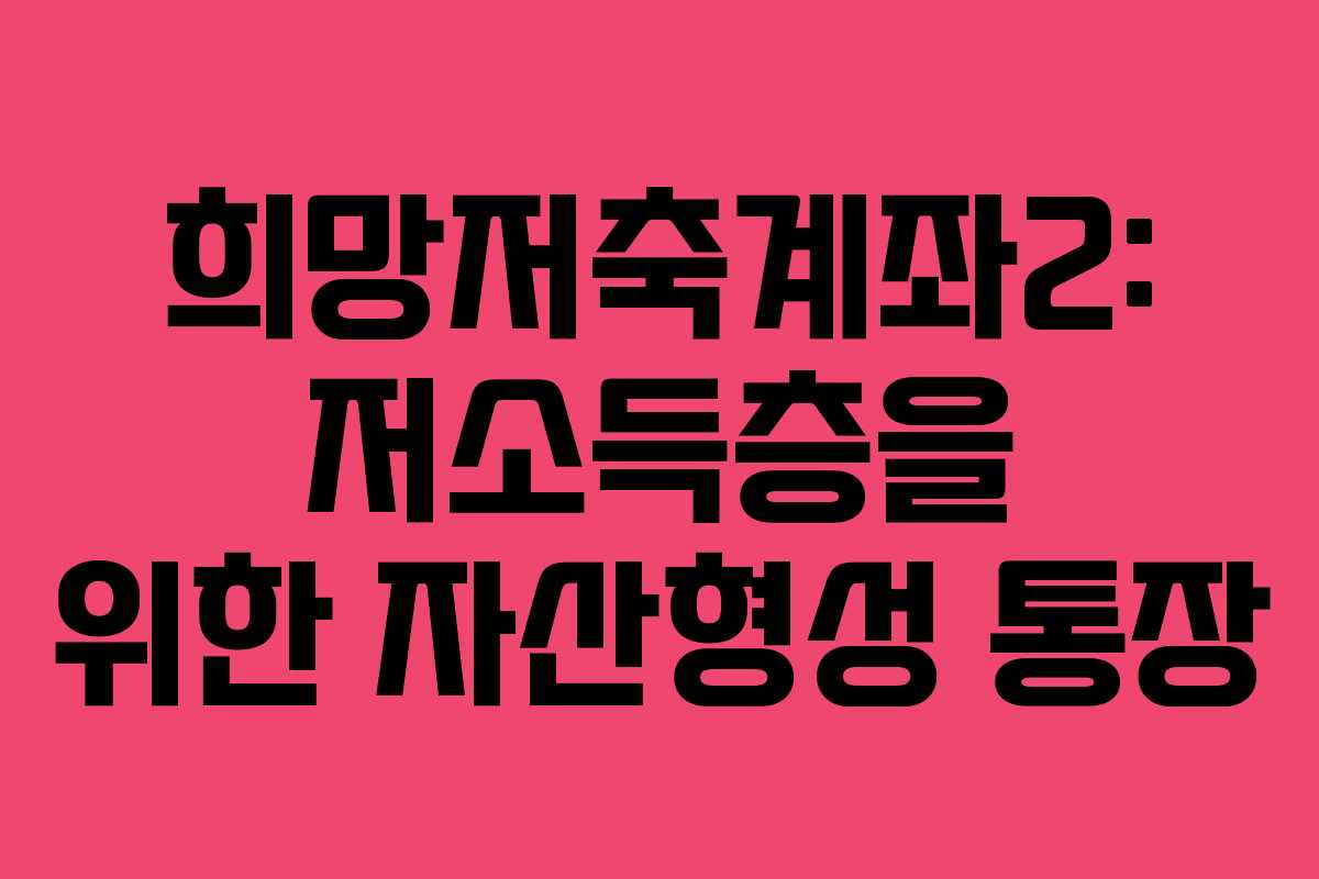 희망저축계좌2: 저소득층을 위한 자산형성 통장