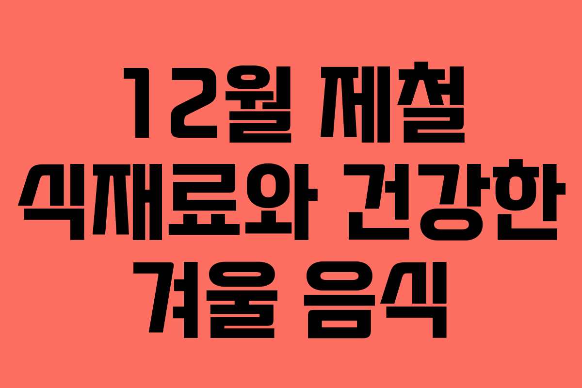 12월은 면역력에 신경 써야 하는 시기입니다. 제철 음식을 통해 건강을 유지하고, 맛있는 요리로 겨울을 즐겨보세요. 여러분의 입맛에 맞는 제철 음식을 선택하여 건강한 겨울을 보내시길 바랍니다!