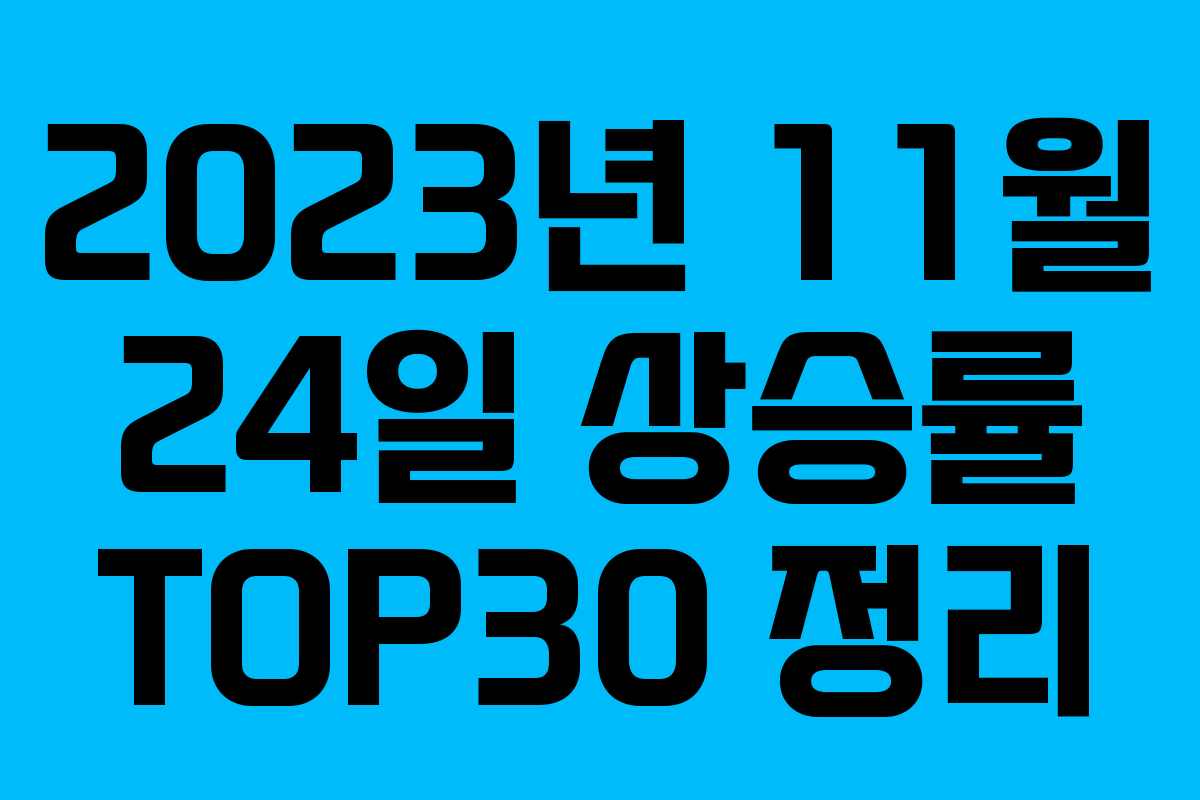 2023년 11월 24일 주식 시장에서는 여러 종목들이 눈에 띄는 상승률을 기록했습니다. 이번 글에서는 상승률이 높은 종목들을 정리하고, 이러한 상승 원인과 함께 주식 시장의 흐름을 분석해 보겠습니다.