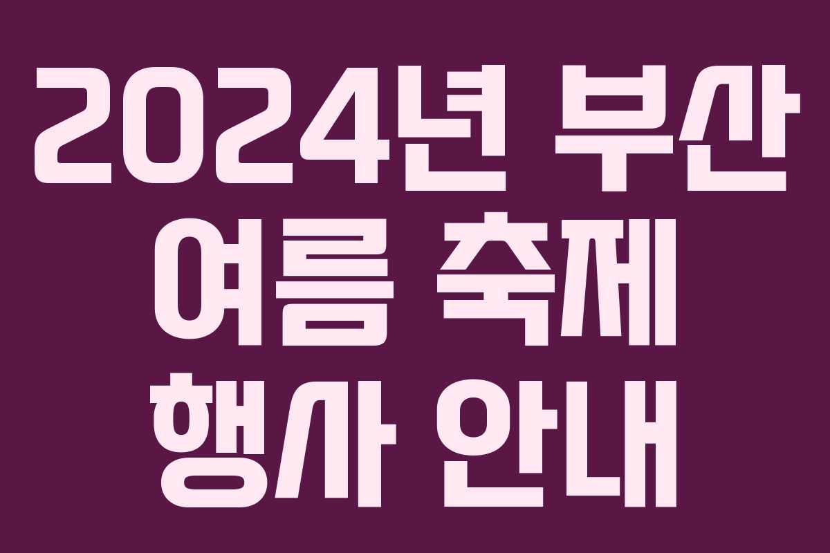 부산 여름 축제는 2024년 7월부터 시작하여 8월까지 다양한 행사로 진행됩니다.