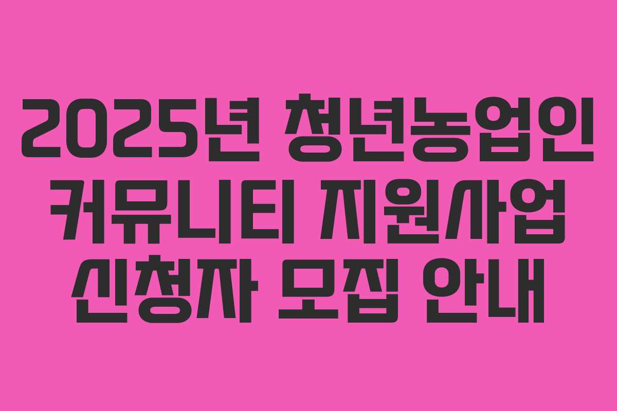 2025년 청년농업인 커뮤니티 지원사업이 시작됩니다. 이번 사업은 청년농업인들이 모여 공동의 활동을 통해 더 나은 농업 환경을 만들어 나가는 데 도움을 주기 위한 것입니다. 신청 기한은 2024년 12월 27일(금)까지이며, 지원 대상 및 내용에 대해 자세히 알아보겠습니다.