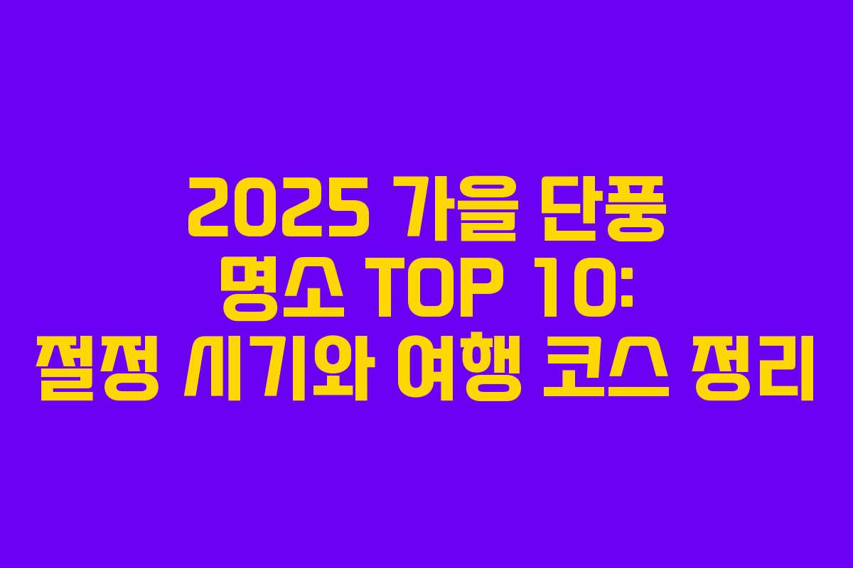 2025년 가을, 단풍을 즐길 수 있는 명소와 여행 정보를 정리했습니다. 이 시기에 맞춰 아름다운 단풍을 만끽할 수 있는 장소를 알아보세요.