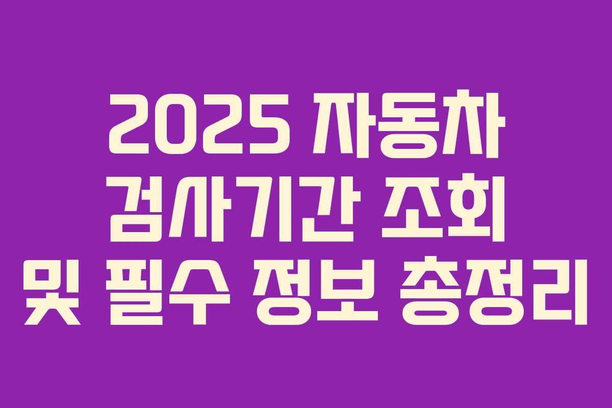 자동차 검사는 차량의 안전성과 배출가스 상태를 점검하는 필수 절차입니다. 법적으로 정해진 기간 내에 검사를 받아야 하며, 기한을 넘기면 과태료가 부과될 수 있습니다. 이번 글에서는 2025년 자동차 검사기간 조회 방법, 검사 종류, 검사 비용, 과태료 기준 및 주의사항을 정리하겠습니다.