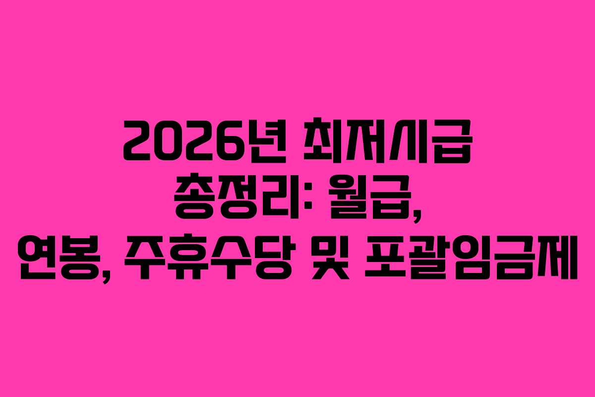 2026년 최저시급 총정리: 월급, 연봉, 주휴수당 및 포괄임금제