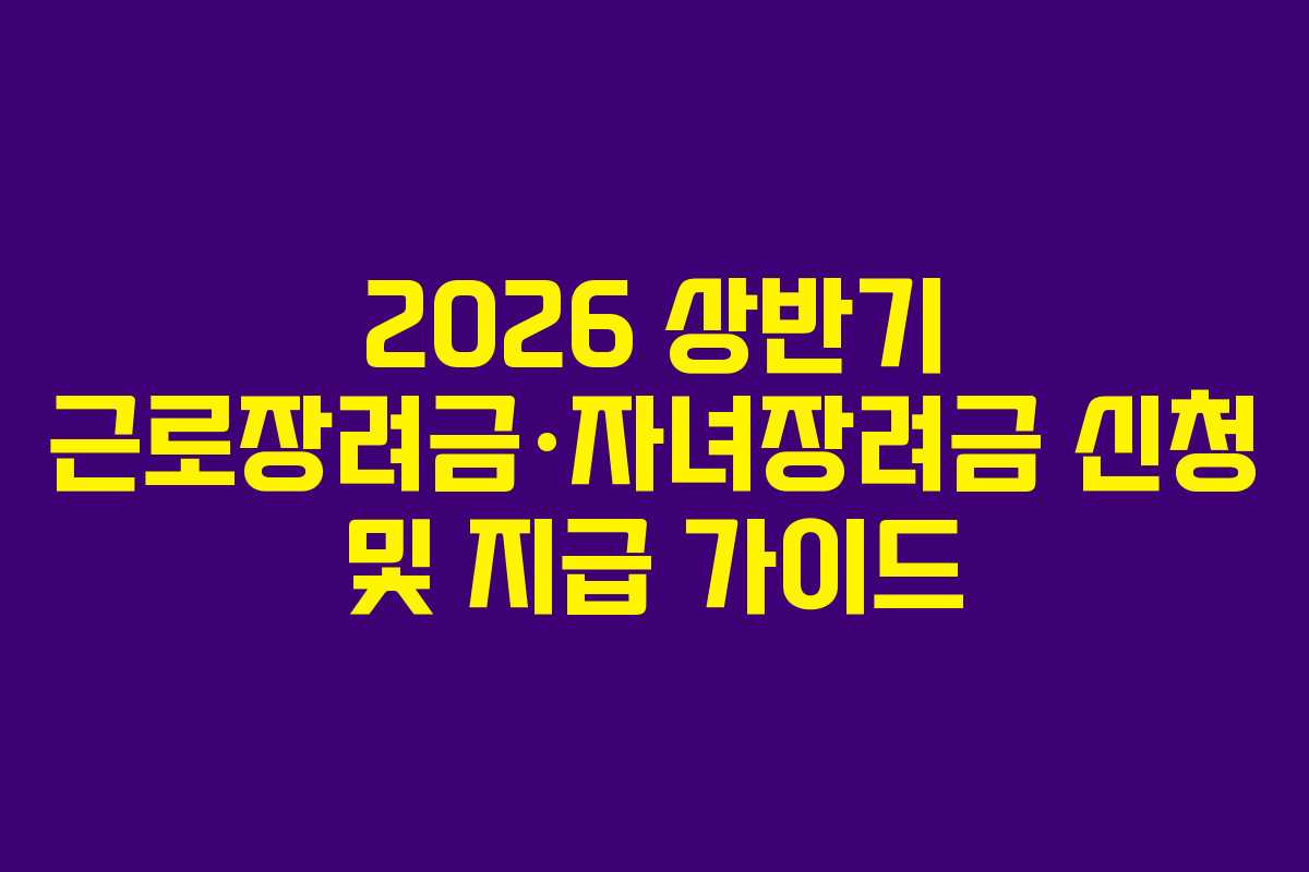 2026년 상반기 근로장려금과 자녀장려금 신청은 2025년 1월부터 6월까지의 소득을 기준으로 하며, 일반적으로 2026년 9월 1일부터 9월 15일까지 진행됩니다. 이 기간을 놓치면 기한 후 신청으로 인한 불이익이 있을 수 있습니다.