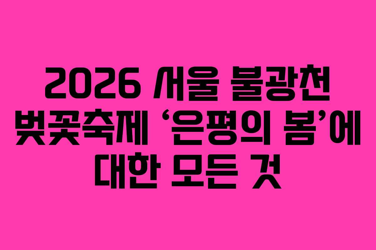2026 서울 불광천 벚꽃축제 ‘은평의 봄’에 대한 모든 것