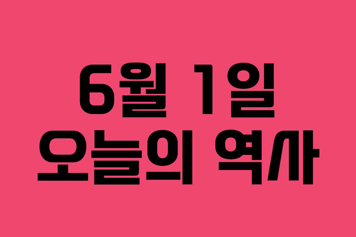 6월 1일은 역사적으로 다양한 사건과 기념일이 있는 날입니다. 이 날의 역사적 사건들은 문화, 사회, 정치 등 여러 분야에 걸쳐 있으며, 중요한 인물들의 출생과 사망일도 포함되어 있습니다.