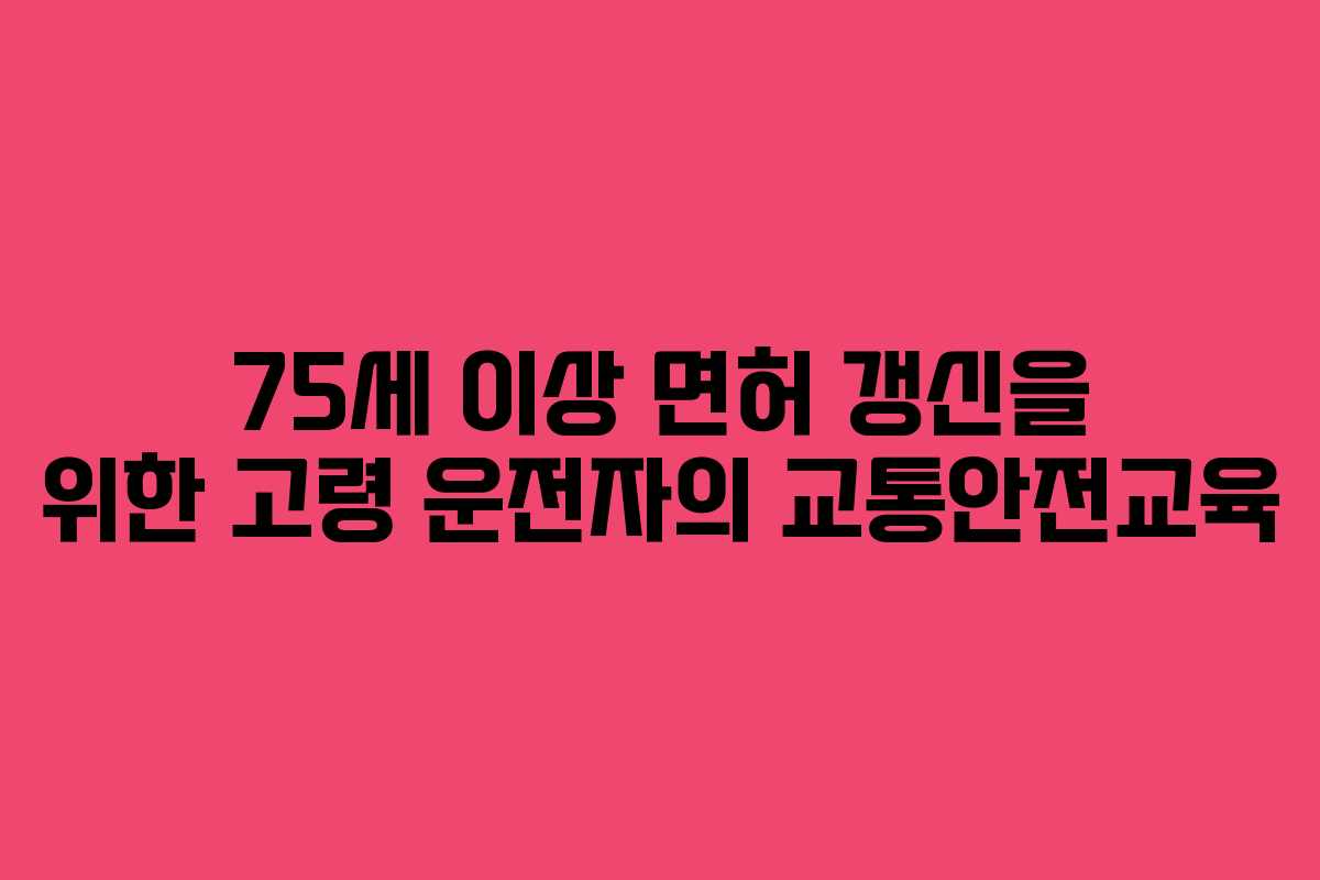 고령 운전자의 교통사고가 증가함에 따라, 75세 이상 운전자는 면허 갱신 시 의무적으로 교통안전교육을 이수해야 합니다. 이 교육은 고령 운전자의 인지 능력 저하와 신체 변화를 고려하여 안전한 운전에 필요한 지식과 기술을 제공합니다. 본 포스팅에서는 고령 운전자의 교육 대상, 신청 방법, 온라인 교육 이수 안내, 운전 능력 검사 절차, 교육 효과 등을 상세히 안내합니다.