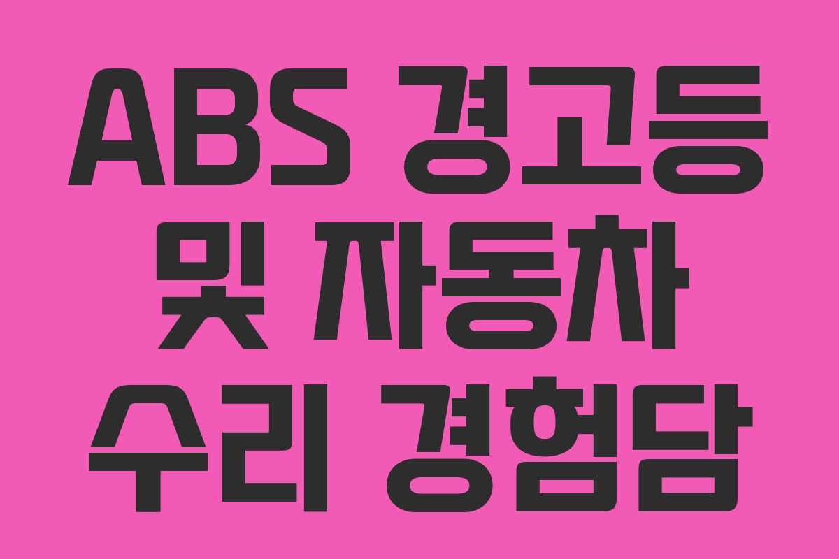 자동차를 운전하다 보면 다양한 경고등이 켜질 수 있습니다. 특히 ABS 경고등이 켜지면 많은 운전자분들이 불안해할 수 있는데요, 저의 경험을 통해 ABS 모듈의 중요성과 수리 과정을 공유하고자 합니다.