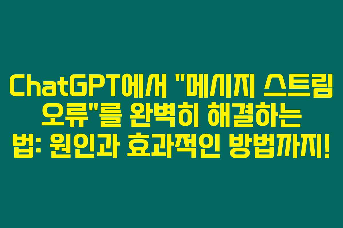 제가 직접 경험해본 결과, “메시지 스트림 오류”는 챗GPT를 사용할 때 꽤 빈번하게 발생하는 문제 중 하나입니다. 이 오류는 사용자의 원활한 소통을 방해할 수 있어 매우 불편하게 느껴지죠. 아래를 읽어보시면, 오류의 원인부터 그 해결 방법까지 상세히 분석한 내용을 확인하실 수 있습니다.