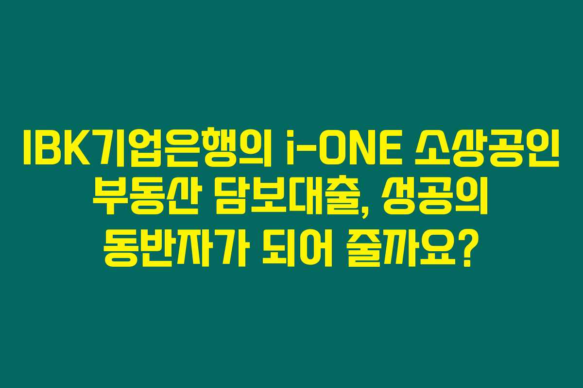 IBK기업은행의 i-ONE 소상공인 부동산 담보대출, 성공의 동반자가 되어 줄까요?