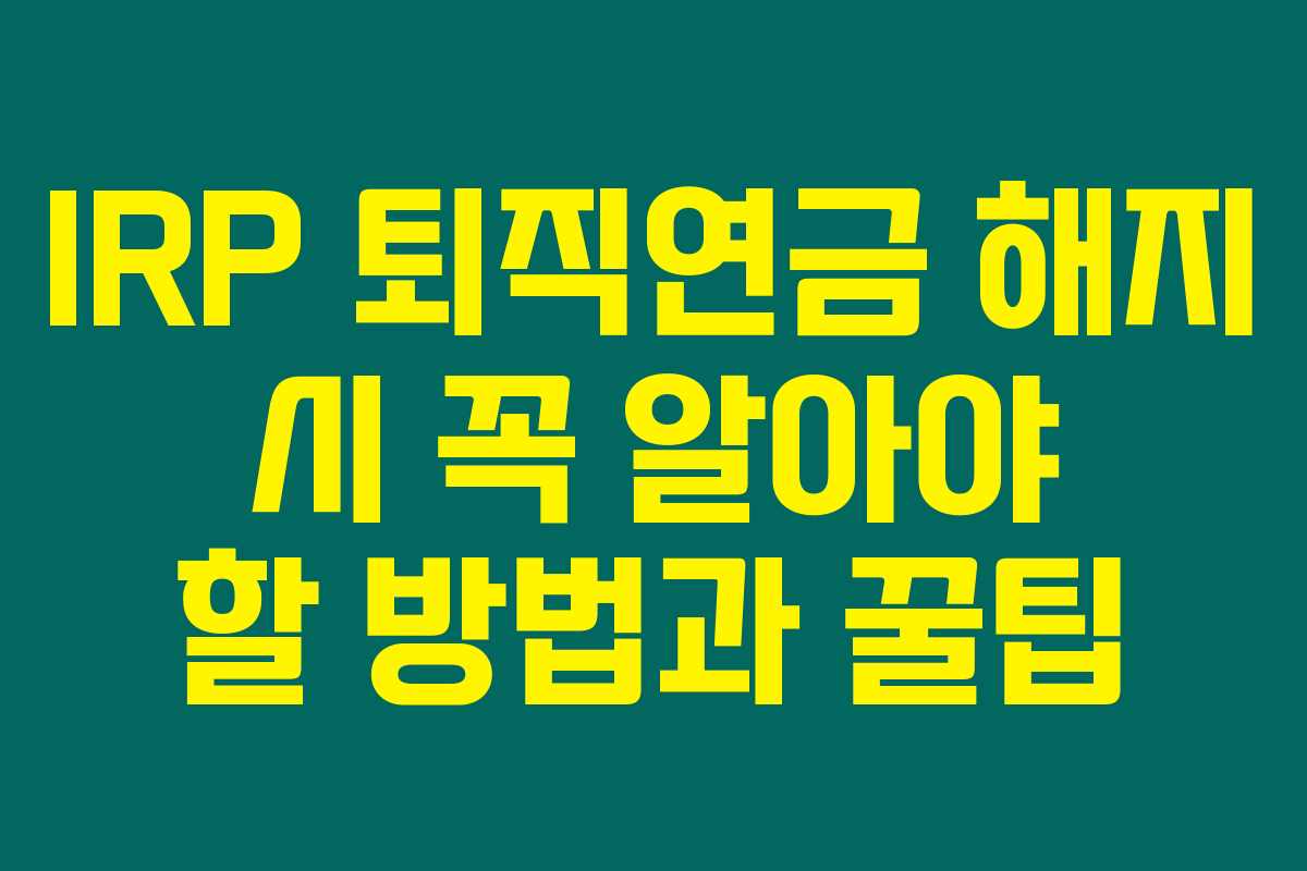 1. IRP 퇴직연금 해지 시 주의해야 할 점은 무엇인가요?