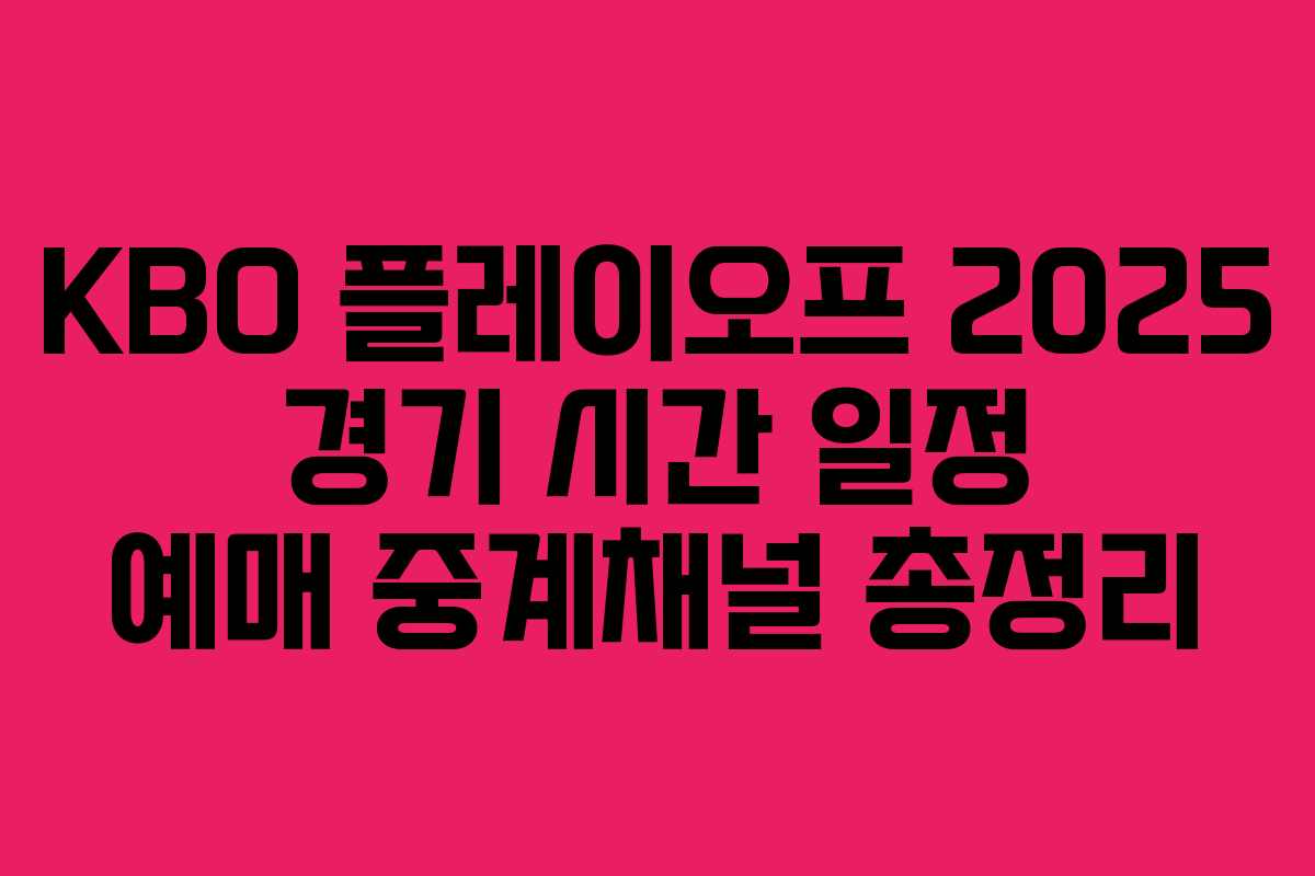 2025 KBO 포스트시즌이 드디어 10월 첫째 주부터 시작됩니다. 이번 시즌의 와일드카드전부터 한국시리즈까지 이어지는 가을야구는 팬들에게 가장 기다려지는 순간입니다. 이번 글에서는 중계 채널, 경기 시간, 일정, 예매 방법에 대해 정리해 보겠습니다.