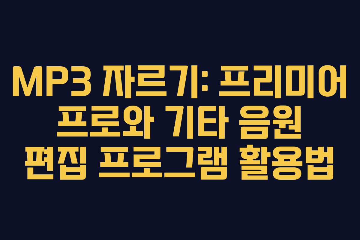 이번 포스트에서는 MP3 파일을 자르기 위한 다양한 방법과 프로그램에 대해 알아보겠습니다. 특히, 프리미어 프로를 포함하여 여러 음원 편집 프로그램을 통해 손쉽게 MP3 파일을 편집하는 방법을 소개합니다.